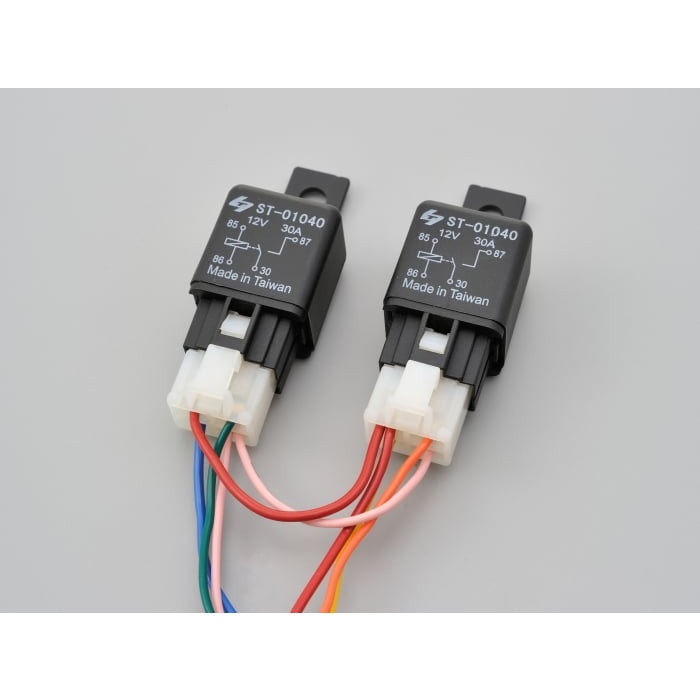 バッテリー近くにリレーを配置し、リレー収納場所に困らない親切設計。バッテリー端子とヘッドライトカプラーを繋ぐだけの簡単接続。 (車種によって取り付け難易度は異なります) 12V30Aの大容量、高耐久性リレー採用。