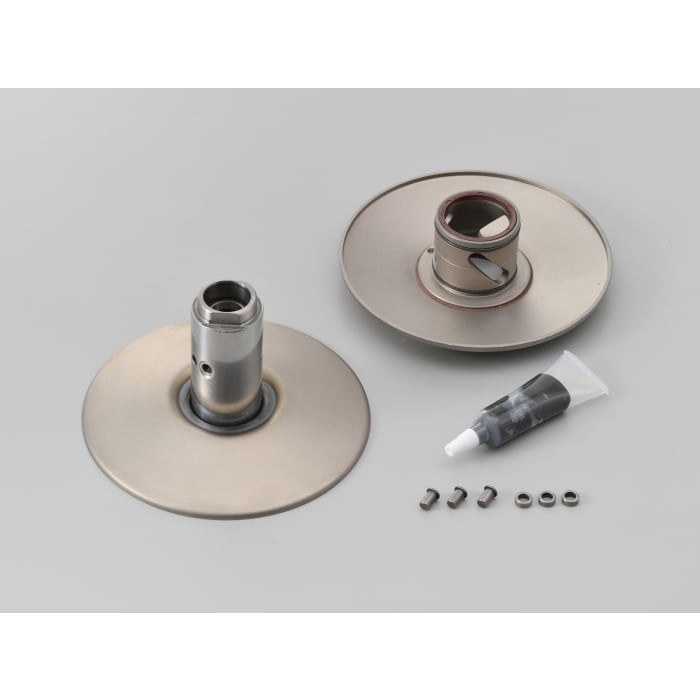 デイトナ社ハイスピードプーリーの指定同時装着品。高速ギヤ領域でのVベルトの落ち込みトラブルを回避してワイドレシオ化するフラットフェイスのドリブンASSYです。