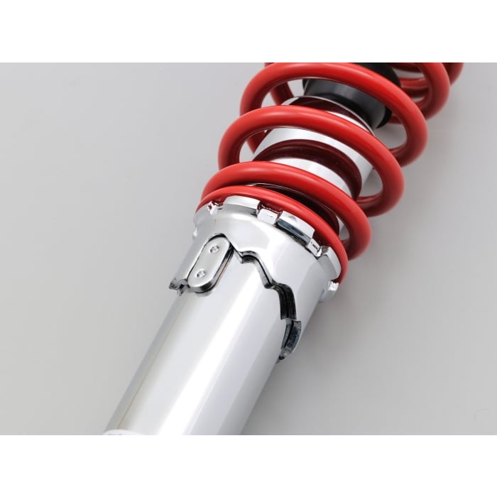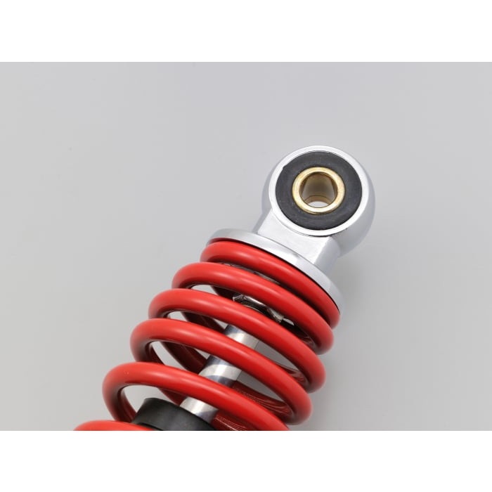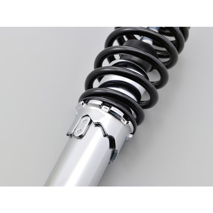 通勤、通学など街乗りを重視したバネレートに設定 (従来ハイグリップタイプと同等) 。スプリングプリロードカム式5段階調整可能なので使用状況に合わせてセッティングできます。リアタイヤやエアクリーナーBOXとの接触を回避して汎用性を高めるため、短めなスプリングを採用しました。多くの原付一種スクーターに対応可能なフィッティングキット付属。