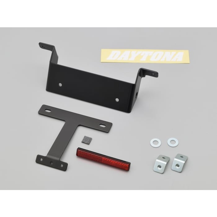 すっきりしたリア回りを演出するフェンダーレスキット。ナンバープレート取付角度は45°に設計。車種専用取付ステー、リフレクター&ステーなど必要部品が一式付属。別途ご購入いただく別売品がない、ボルトオンキットです。