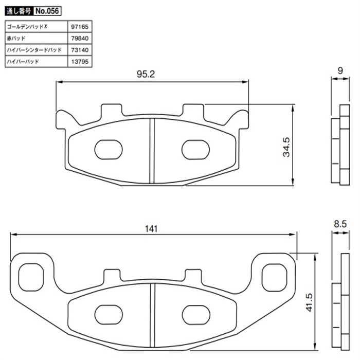 赤パッド No.056 ゼファー750 91-06 / ゼファー400 89-95 / ZZR400 90-92等