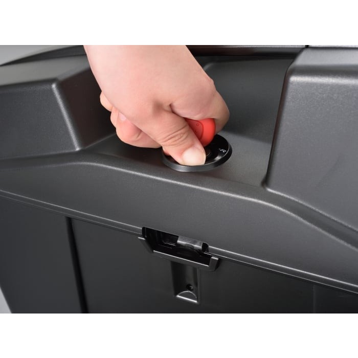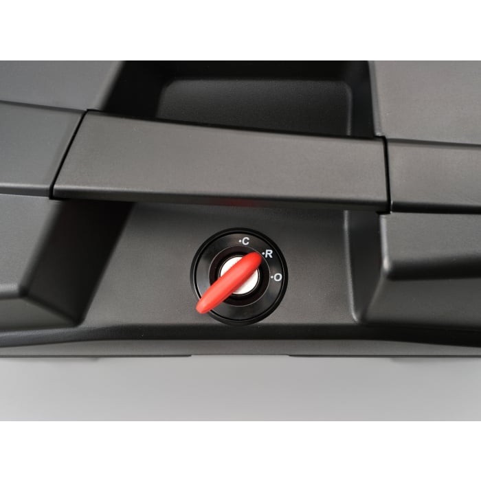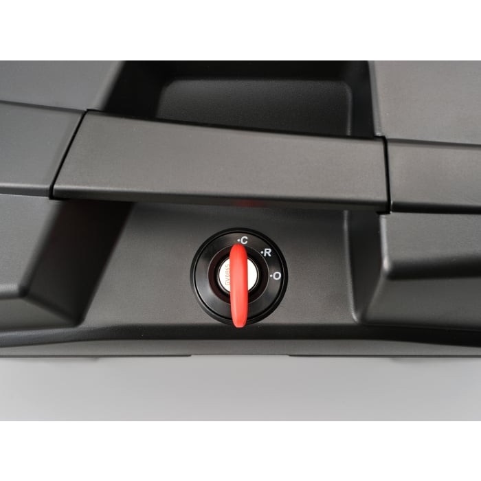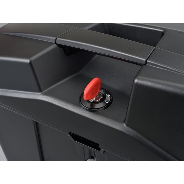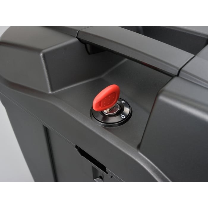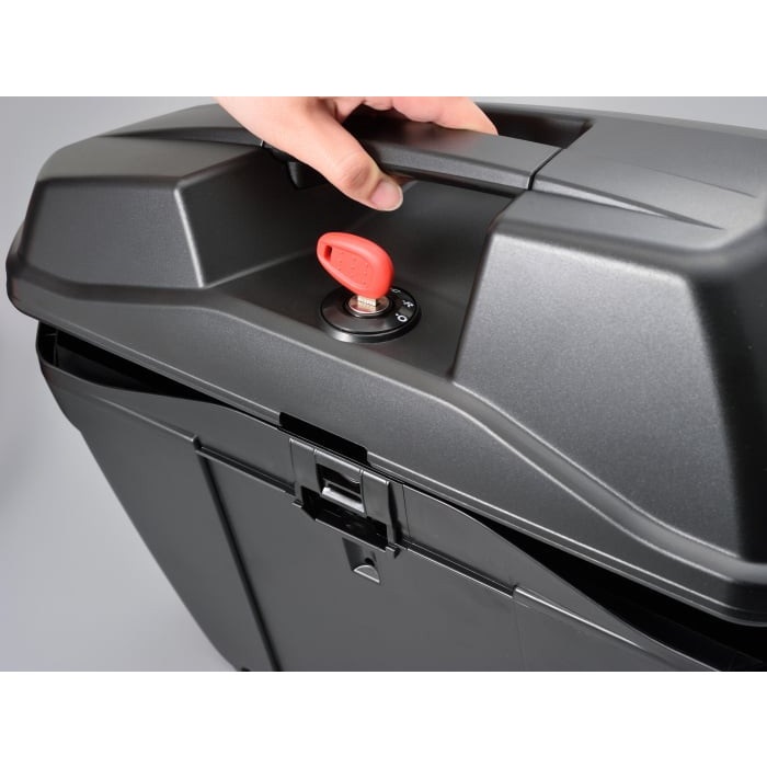 「OPEN」「RELEASE」「CLOSED」の3ポジションプッシュキー方式を採用した、モノキータイプのサイドケース。エッジを効かせたシャープなデザインを採用。