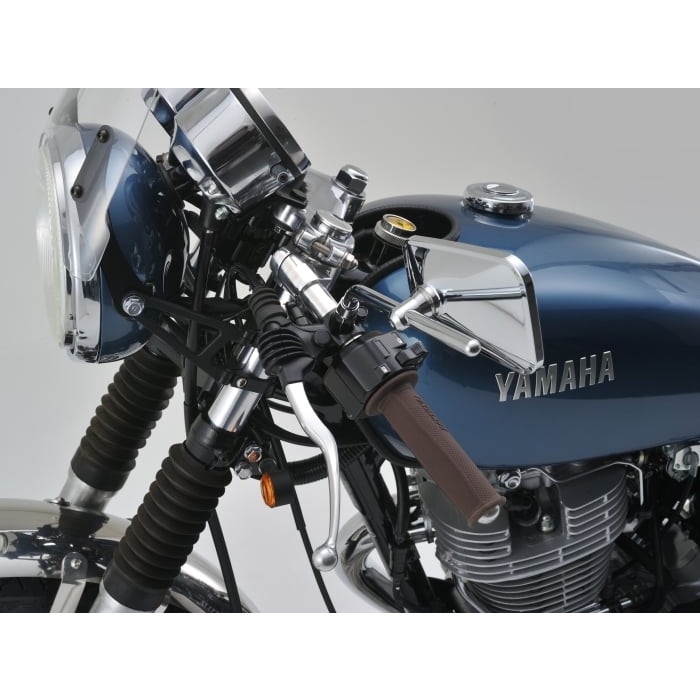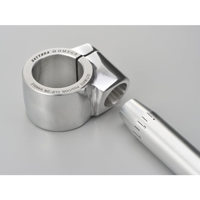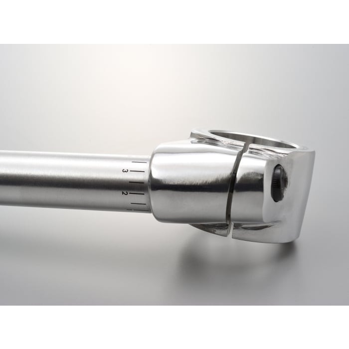 9°~15°にわたる三次元の角度調整を可能にした屈折テーパー加工(PAT.P)により、各ライダーに合わせてベストなポジションに設定可能。総アルミ製(バーエンド取付不可)。クランプとハンドルバーの結合は安全強固なテーパーとスクリューにより固定。強度はアムスラー試験機6、600kg/cmをクリア。取付調整用6mmL型六角レンチ付。