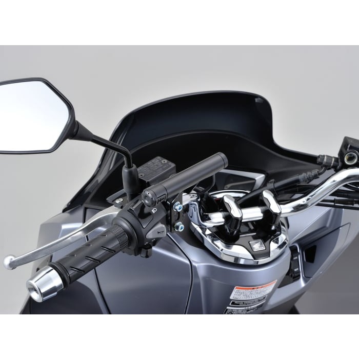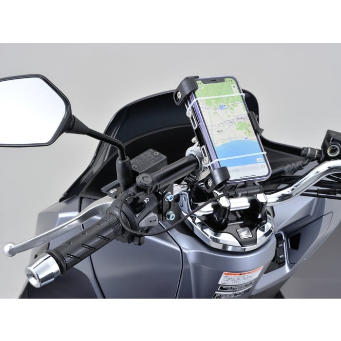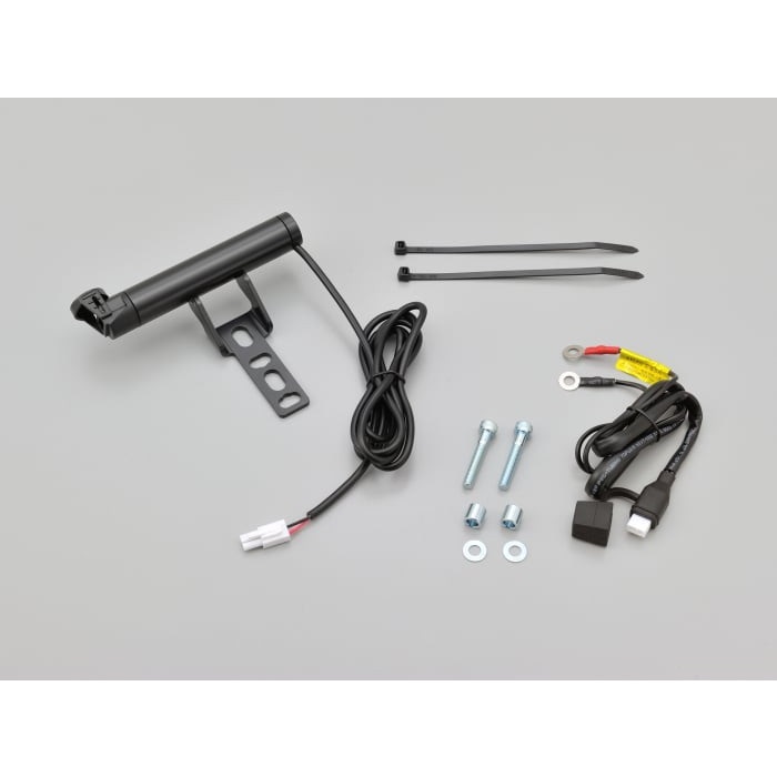 好評のマルチバーホルダーにUSBソケットを組み込みました。ハンドル回りの配線をスッキリ処理できます。USB 5V2.1A出力で、iPhoneを始めモバイル機器の充電が可能です。