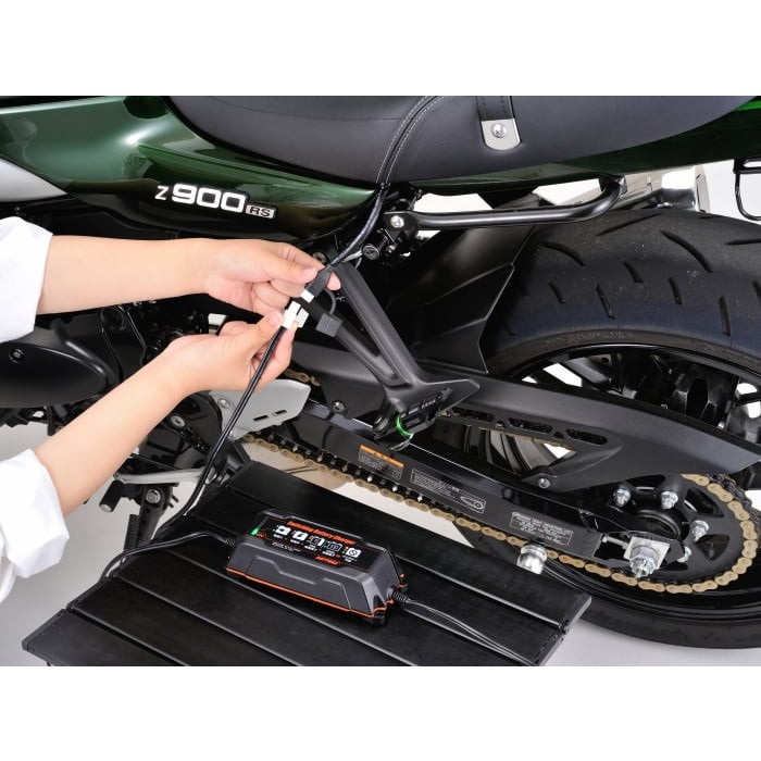 車載ケーブルで充電器と接続可能。長期保管にも最適。