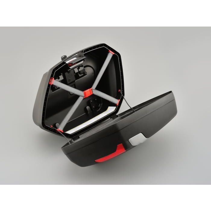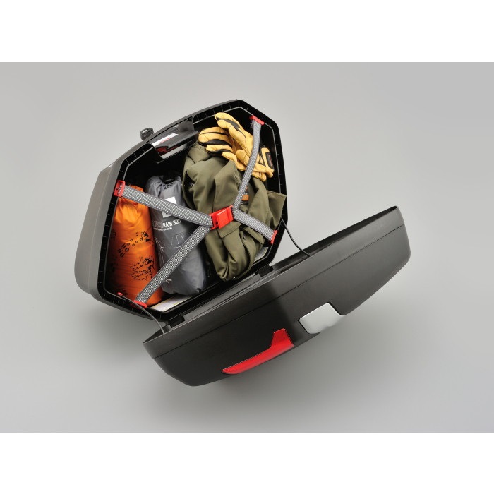 サイドケース 片側 37Lの左右セット。別売の車種別サイドケースフィッティング(PLX/PLXRパニアホルダー)と組み合わせて車体に装着します。