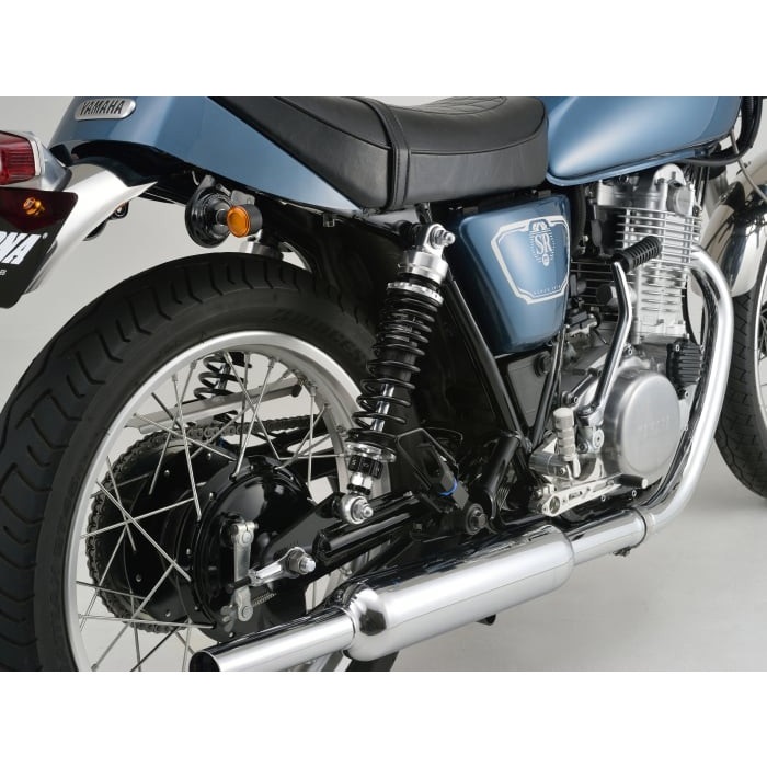 SR400/500全年式対応。従来品に対しスプリング特性を変更し、サポートスリーブを追加しました。エンド部はラバーブッシュを採用。スポーツ性と乗り心地を両立します。最大荷重を確保し2人乗りにも対応。