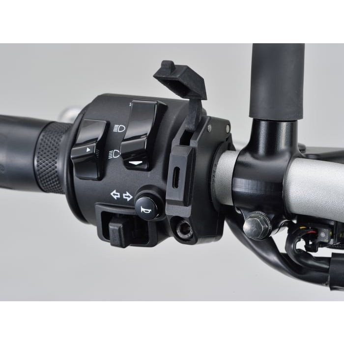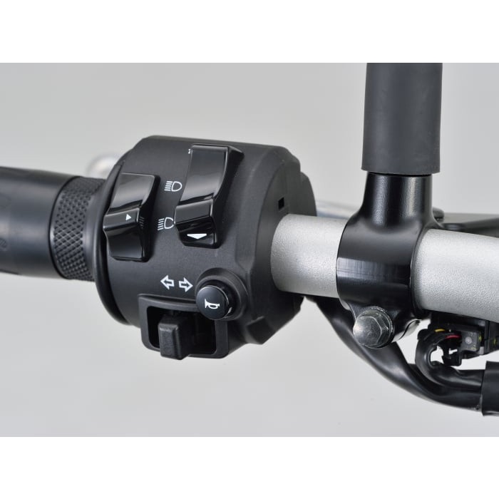 ・商品構成:ユニット本体(ミニガラス管ヒューズ Ф5.2×20mm/250V5A組込済み)×1 / ハンドルクランプスペーサー ×1 / ブレーキスイッチ分岐ハーネス ×1 / 延長ハーネス ×1 / アース線 ×1 / 結線コネクタ(AWG14-18/0.75-2sq配線対応)×1 / 結束バンド ×2