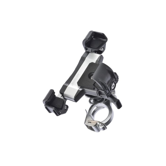 独自のロック機構でサイドウイングをガッチリロック。ロックレバーを大型化したことで操作性がアップしました。スマートフォンを装着した状態で工具を使用せず360°回転が可能。高強度アルミ合金製のスライドアームを採用することで大型スマートフォンに対応しました。