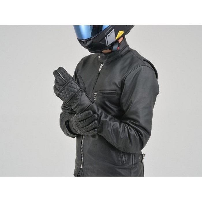 全面本革で要所にレザーパッチを当てることで操作性と安全性を確保しつつ、クラシカルな雰囲気を演出。流行のネオクラシックバイクに似合うビンテージスタイル。防水防風フィルム入り。
