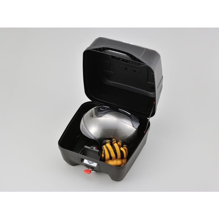 「ATLAS B33NM」は、人気の四角い形状の新型ボックス。コンパクトながらフルフェイスヘルメット1個やA4サイズのビジネスバッグがすっぽり入るサイズ。車体への取り付けは、付属の汎用ベース(MP60N)を使用し純正や市販のキャリアに取り付けできます。フタを閉めるだけでロックが掛かるプッシュダウンクローズシステム採用。