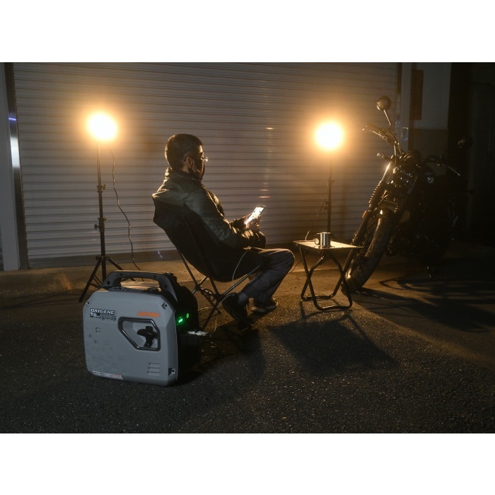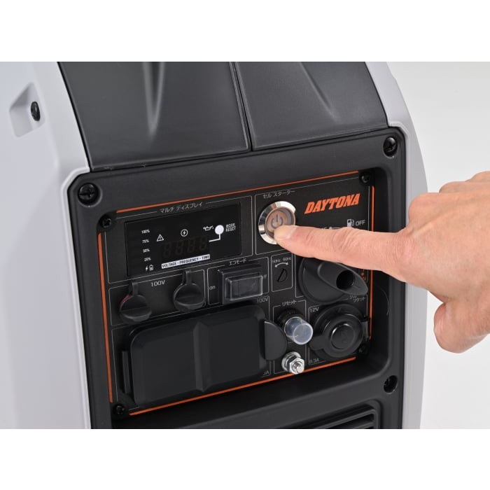 エンジン始動が簡単なセルスターター機能を搭載した出力1900Wの【 DAYGENE1900e 】。「リコイル式の始動がチョット・・・」というご年配の方や、女性にも優しいリモコン式セルスターターでエンジンのON/OFFが簡単に操作可能になりました。