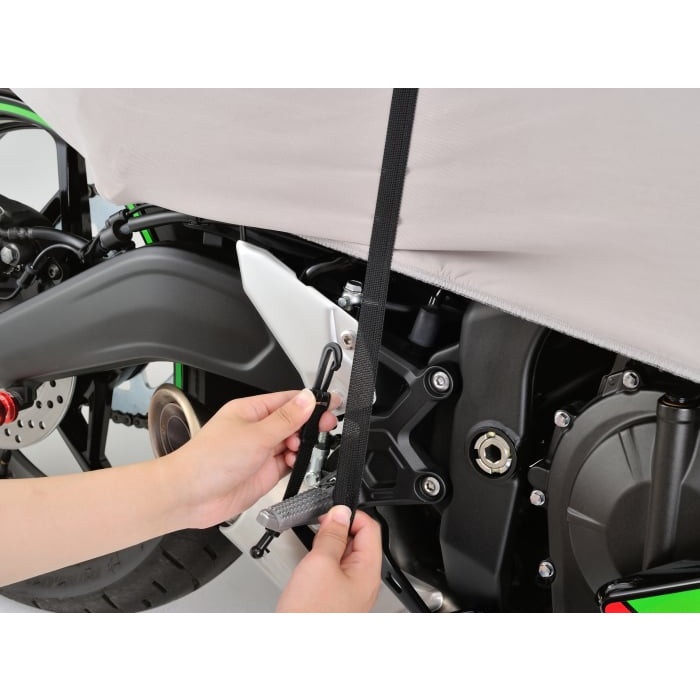 ※生地を極度に引っ張ったり過度な負荷を掛けないでください。生地の劣化や、ナンバープレートやウインカー等の破損の原因となることがあります。