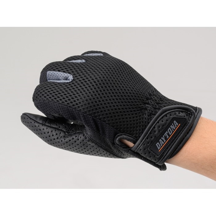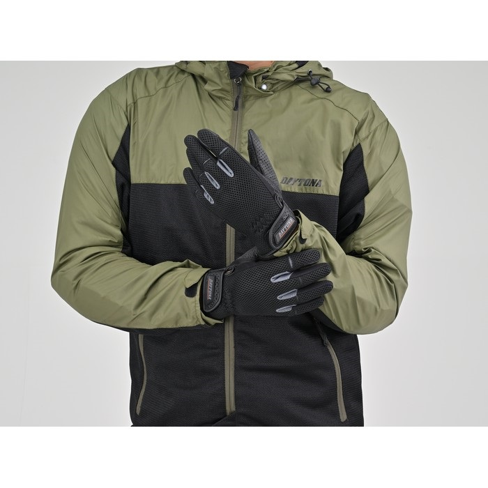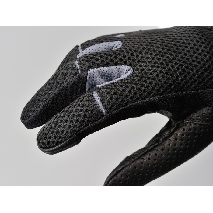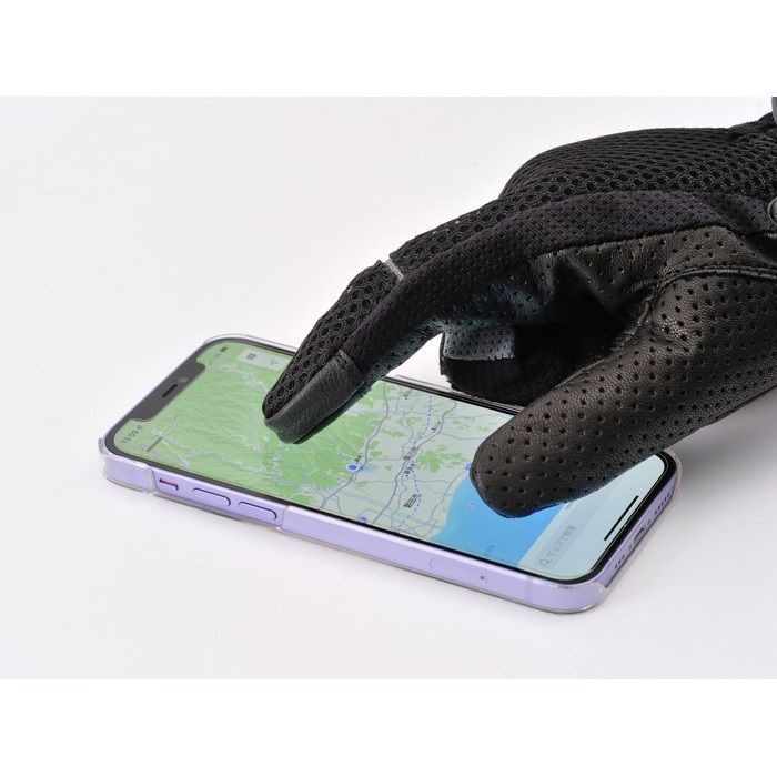 指股には通気性に優れるストレッチ素材を採用することで、高いフィット感、通気性と安全性を両立。真夏でも快適にライディングできます。タッチパネル対応です。