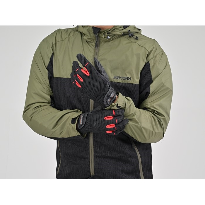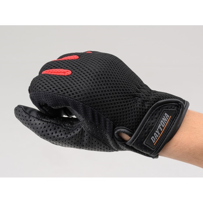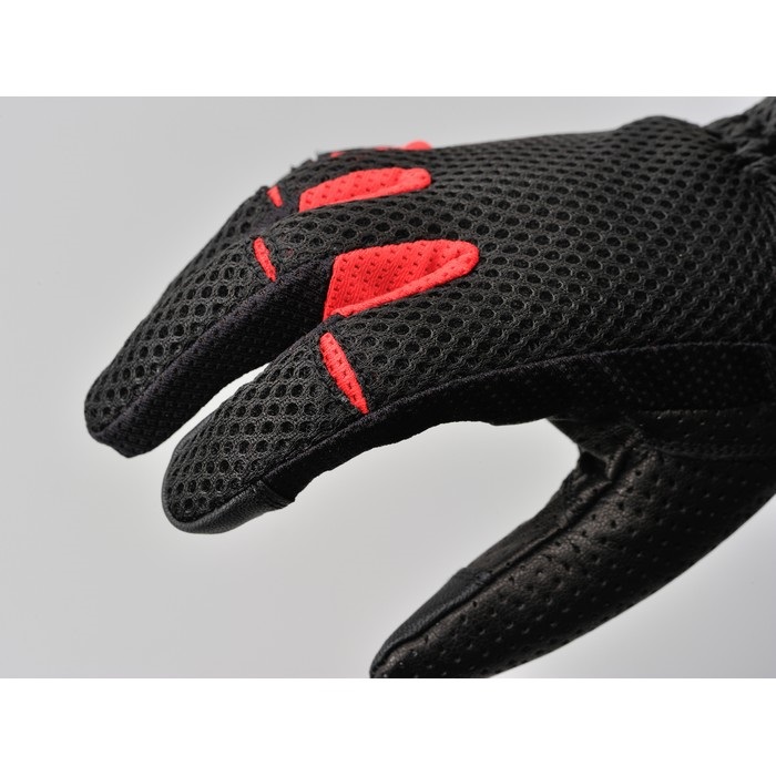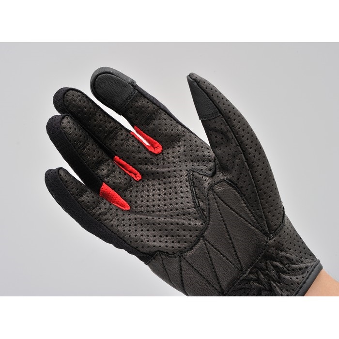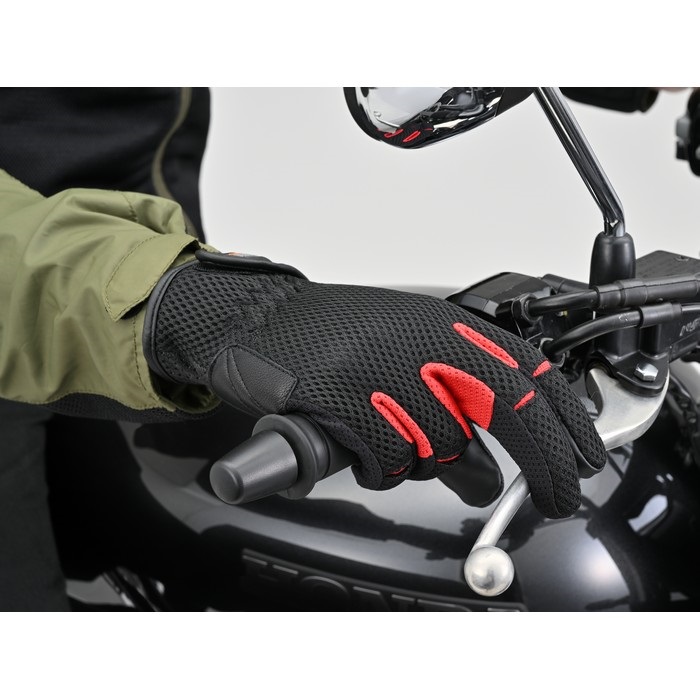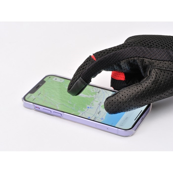 指股には通気性に優れるストレッチ素材を採用することで、高いフィット感、通気性と安全性を両立。真夏でも快適にライディングできます。タッチパネル対応です。