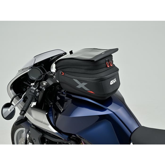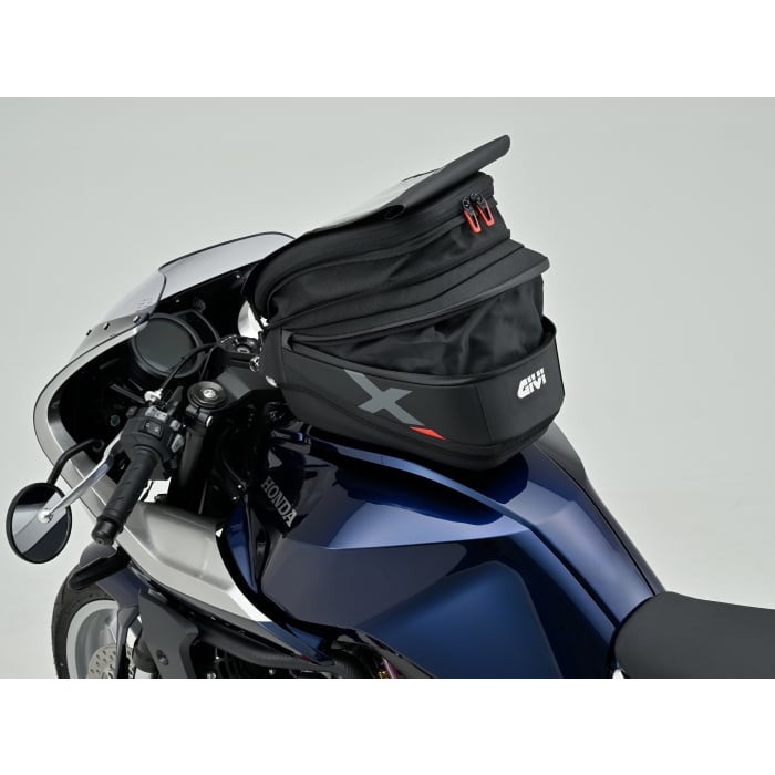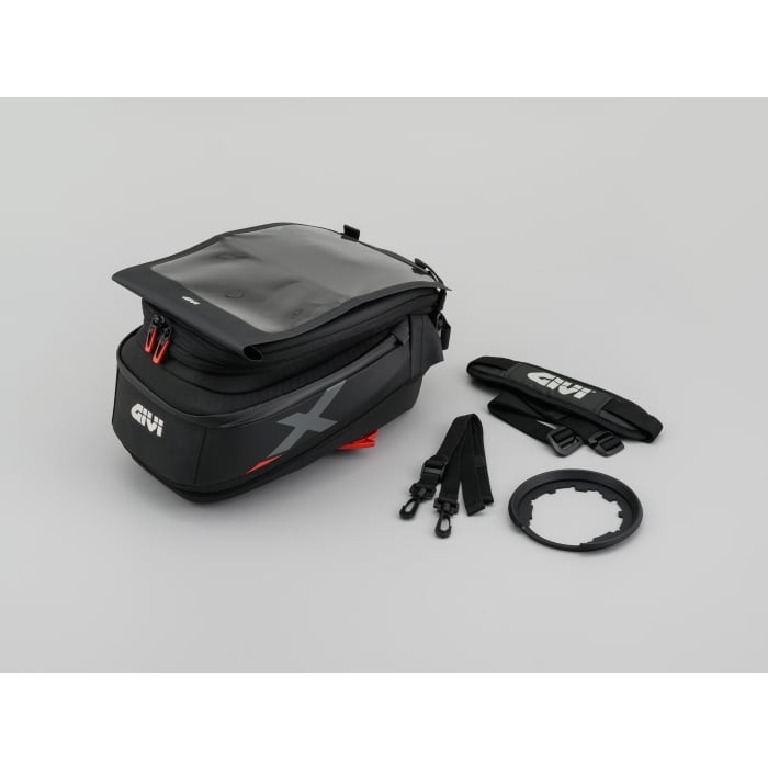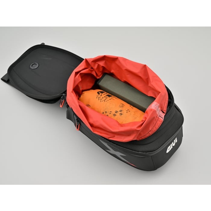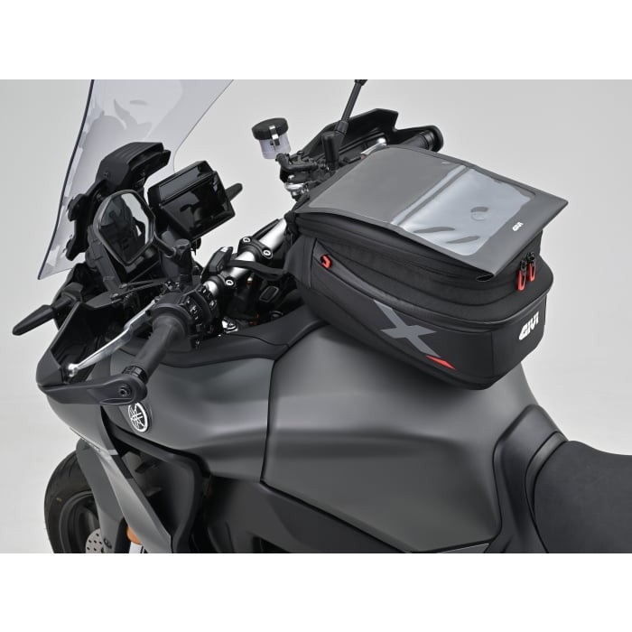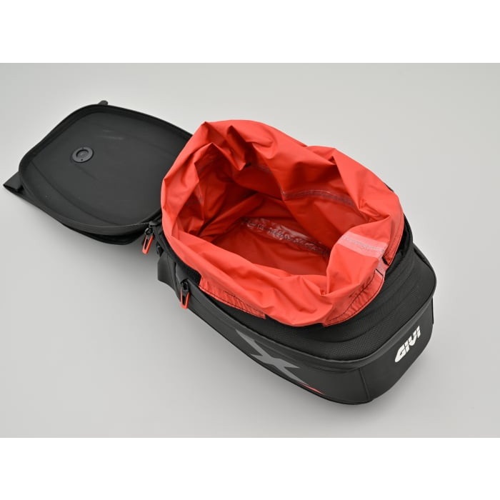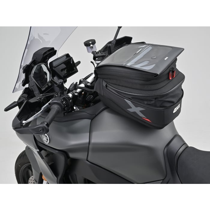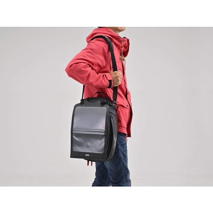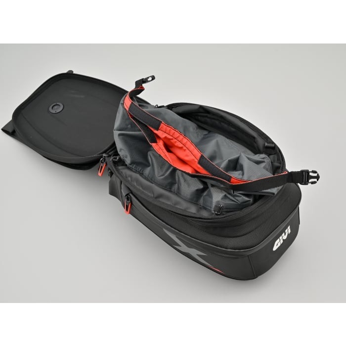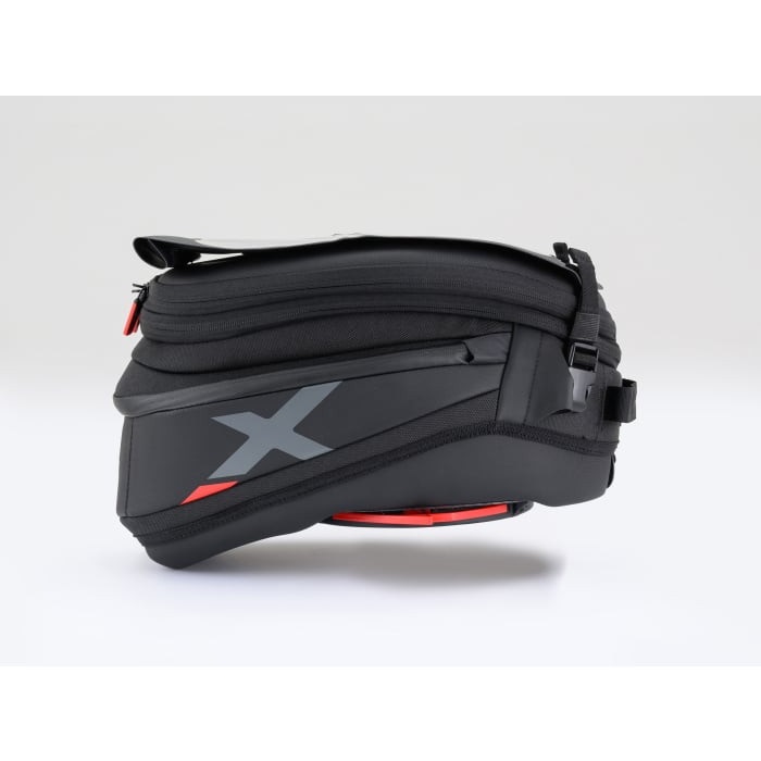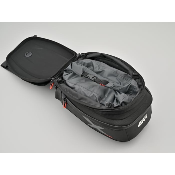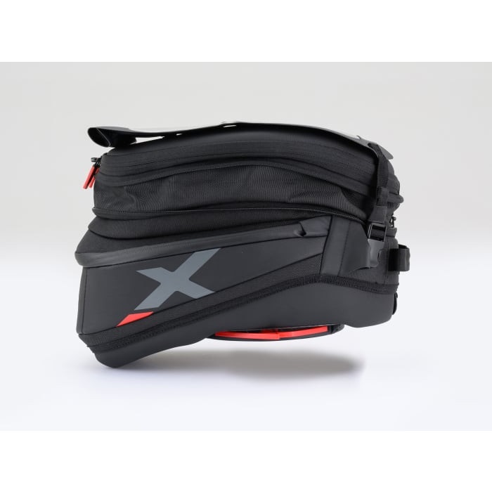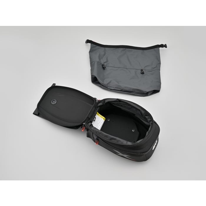 脱着可能な防水インナーバッグの二重構造で高い防水性(IPX5相当)を発揮。大容量ながらスタイリッシュなデザインで容量は15Lから20Lへ2段階拡張できます。タンクバッグ上面のタブレットポケットはワンタッチで脱着することができます。