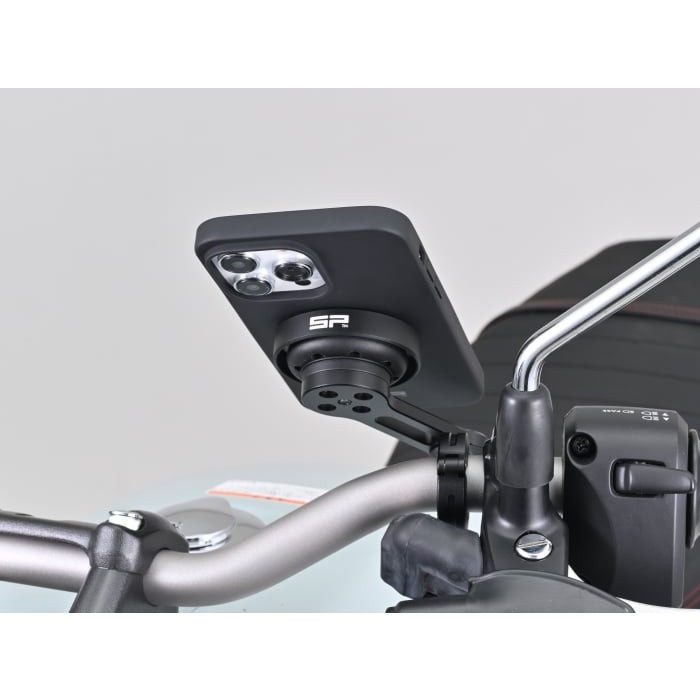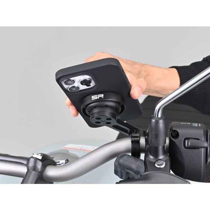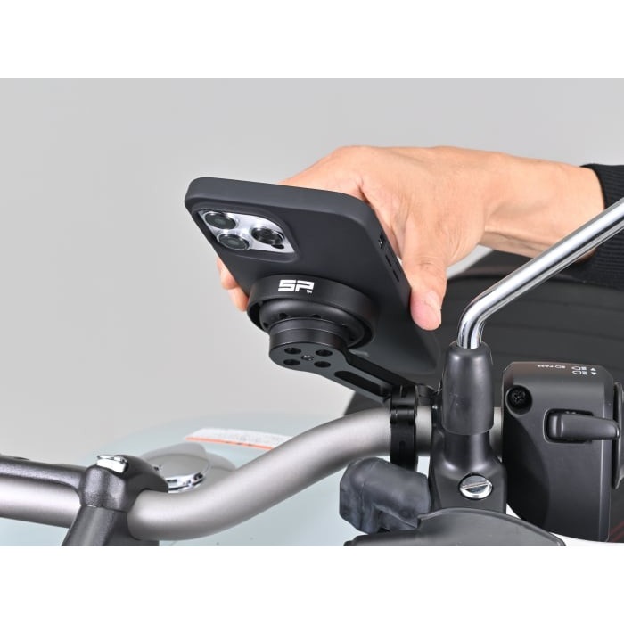 オートバイ用マウントのマウントヘッドと交換することで、振動によるスマートフォンへのダメージを軽減できる別売オプション。