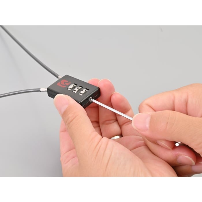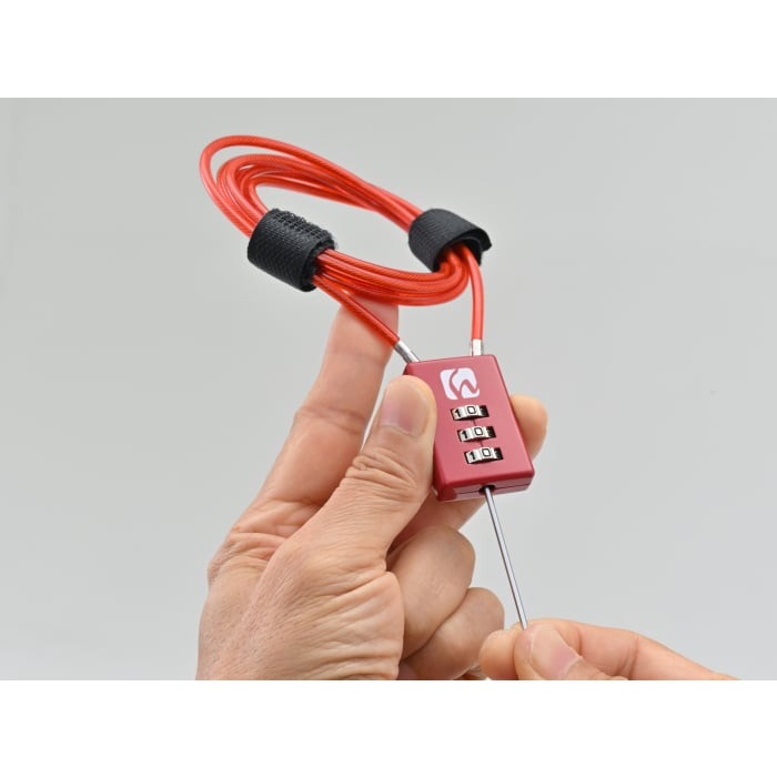 ヘルメットやバッグのイタズラ防止に。ヘンリービギンズバッグのファスナー穴に挿入できます。ダイヤルは「0?9」の数字3桁で任意に設定可能。
