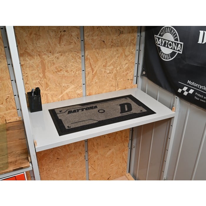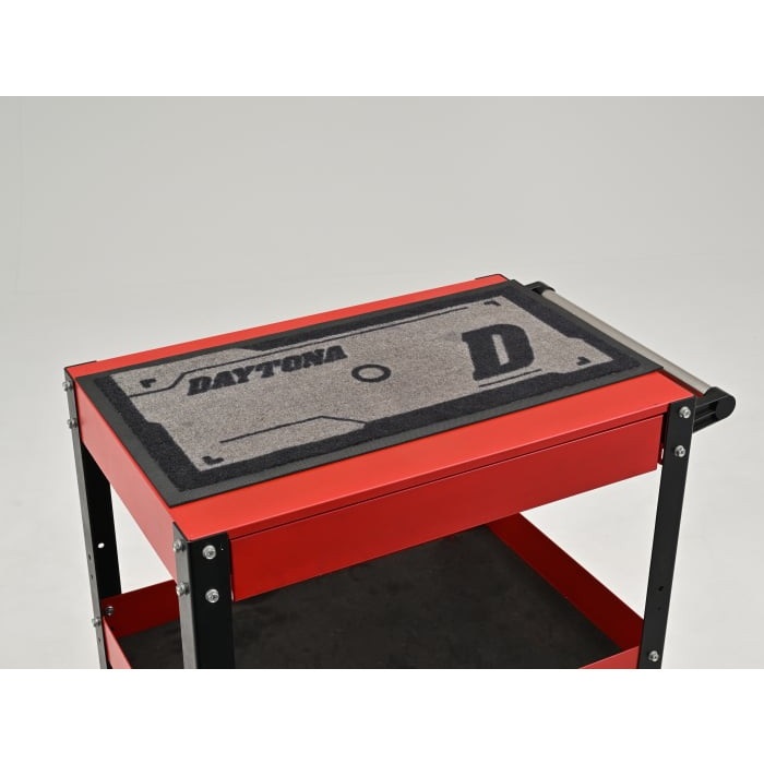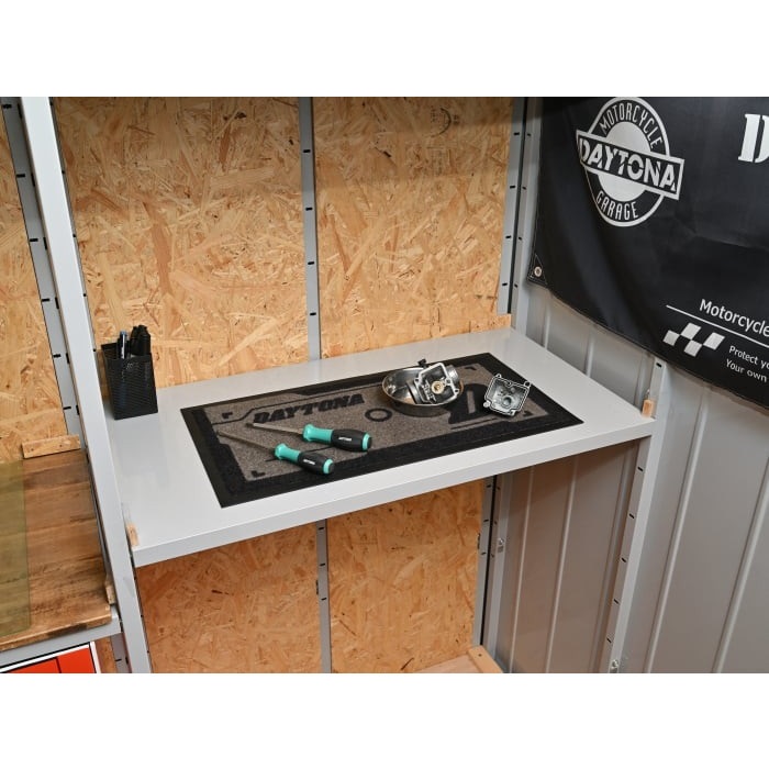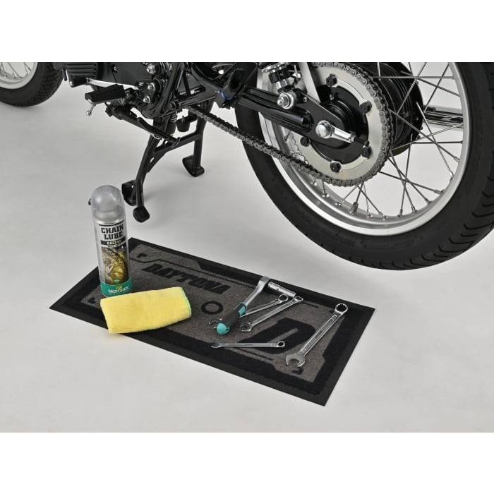 ゴム素材のベースの上に耐久性の高いナイロン起毛を採用した、バイクの整備・保管に最適なメンテナンスマットです。ツールワゴンや作業台の上で使えば、小物が転がったり傷つかず便利。