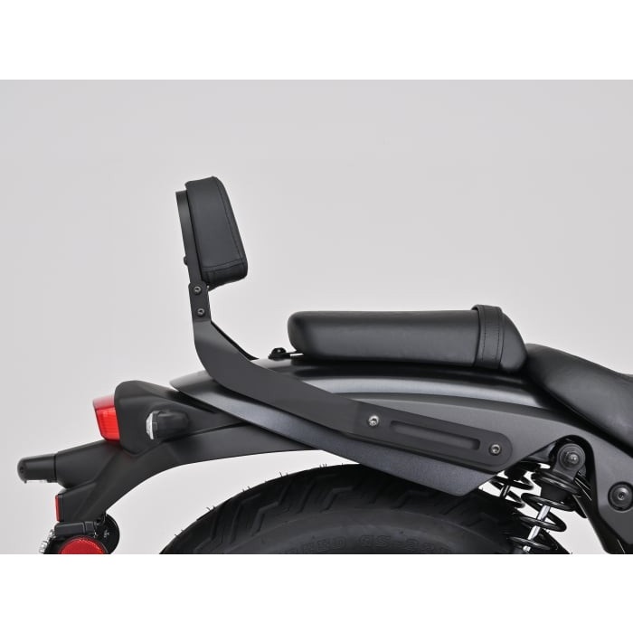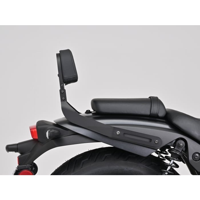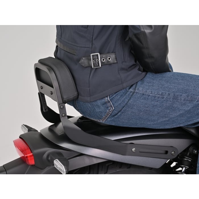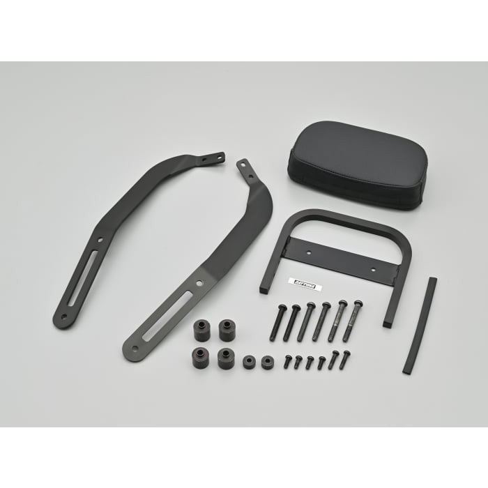 パッド位置を上下2ポジション調整(上下25mm変更)が可能なパッセンジャー用のバックレスト。付属品を使用すれば、デイトナ社ツールバッグをパッド背面に装着できます。グラブバーキャリア、サドルバッグサポートとの同時装着も可能です。