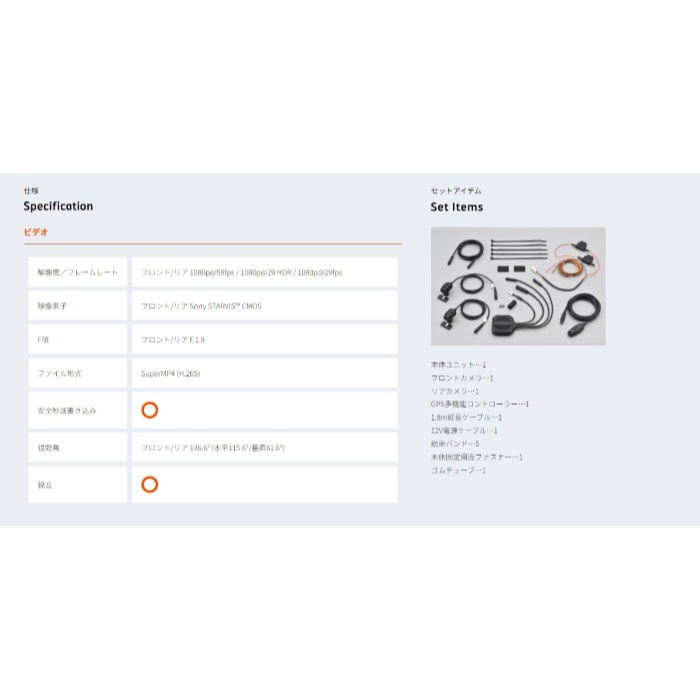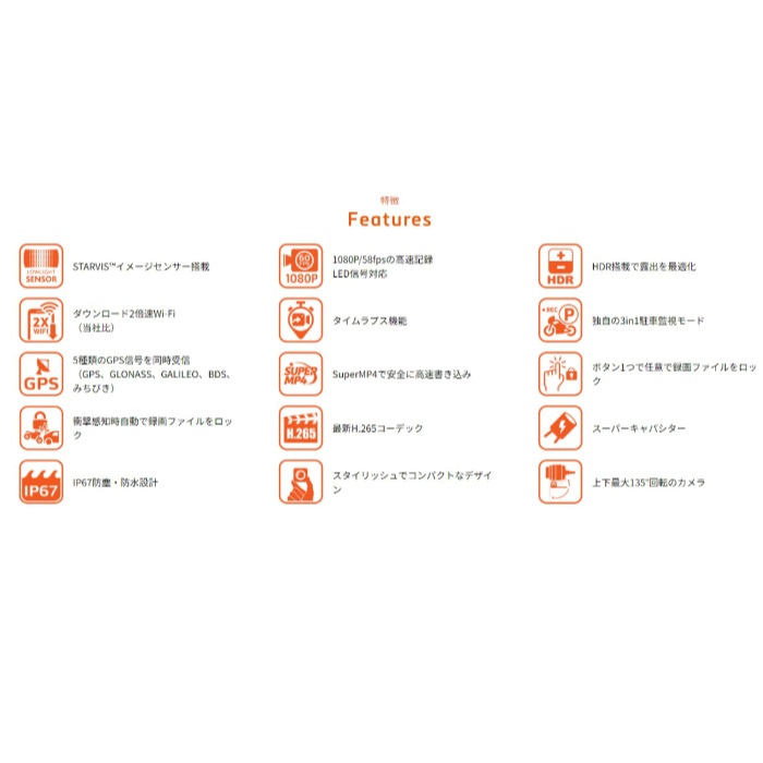 ●前後カメラにソニー製の高感度StarvisCMOSイメージセンサーを使用