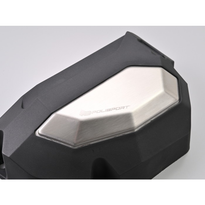 Polisportから生み出されたエンジンプロテクター。高耐久性プラスチックとステンレスプレートを組み合わせエンジンカバーを守ります。車種専用設計でエンジンカバーとプロテクターのすきまにゴム製のダンパーを組み込むことで、衝撃を分散させます。