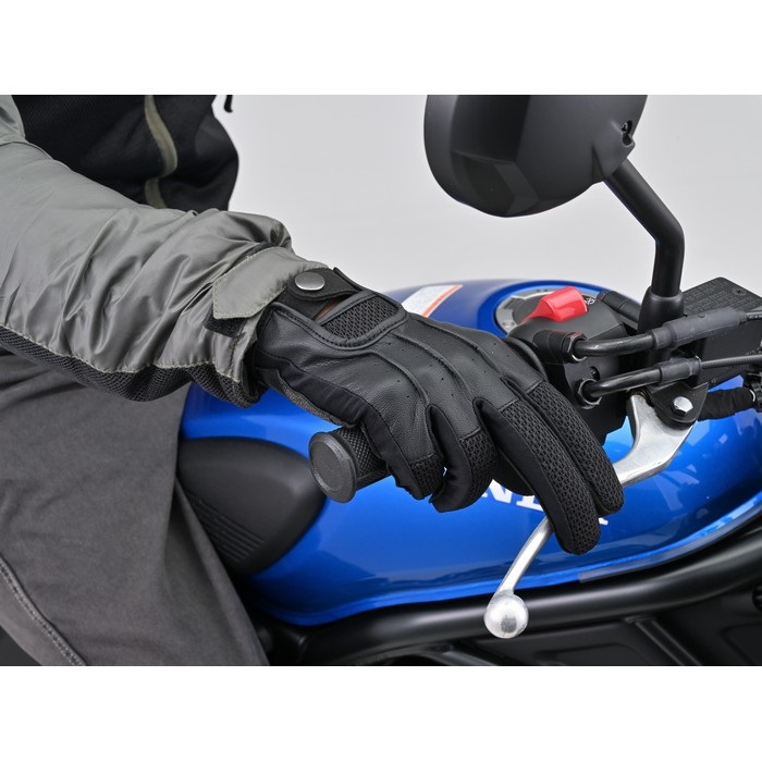 手の平には本革にケブラーパッチを重ね、手の甲にも本革を使用。軽量で涼しく、シリーズ中最もショートでカジュアルなデザインです。