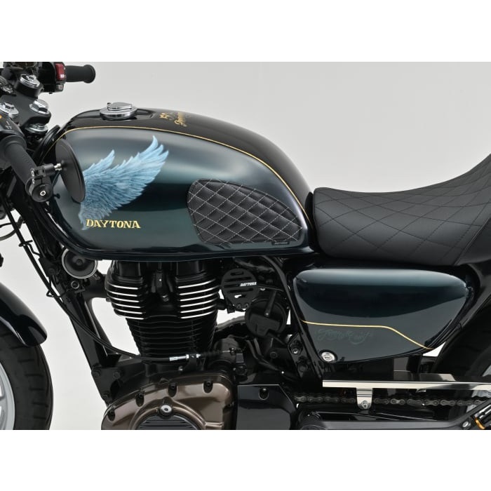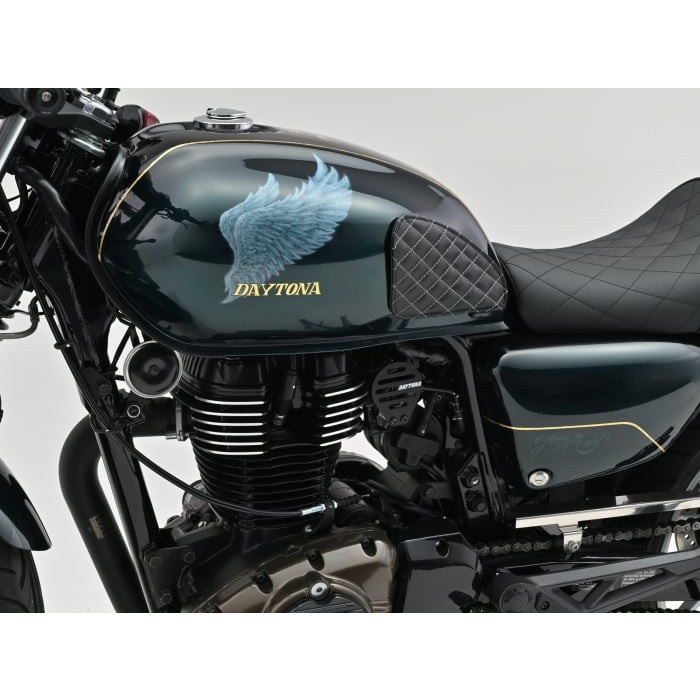 ダイヤステッチがスタイリッシュな車種専用設計のPVCレザー製タンクパッド。デザインだけでなく、ウレタンを裏打ちすることで、冬でもタンクの冷たさを感じません。