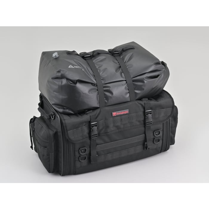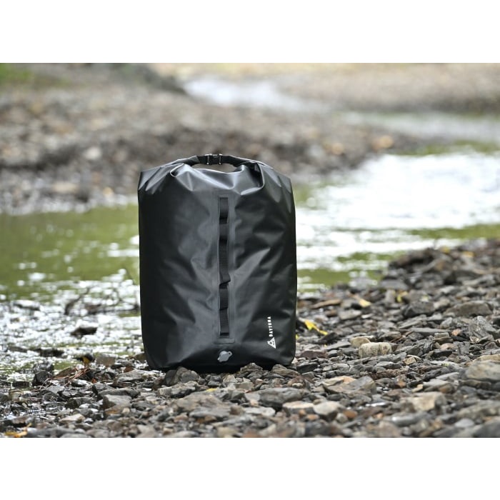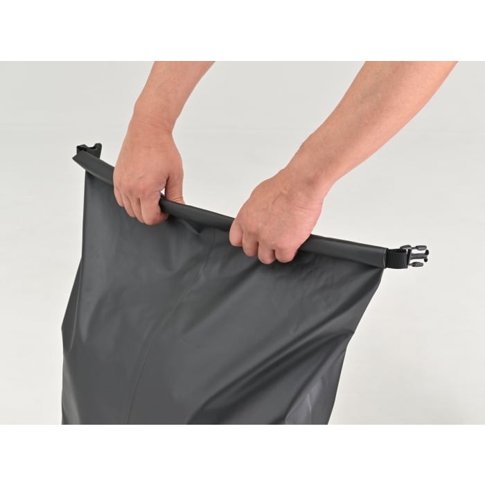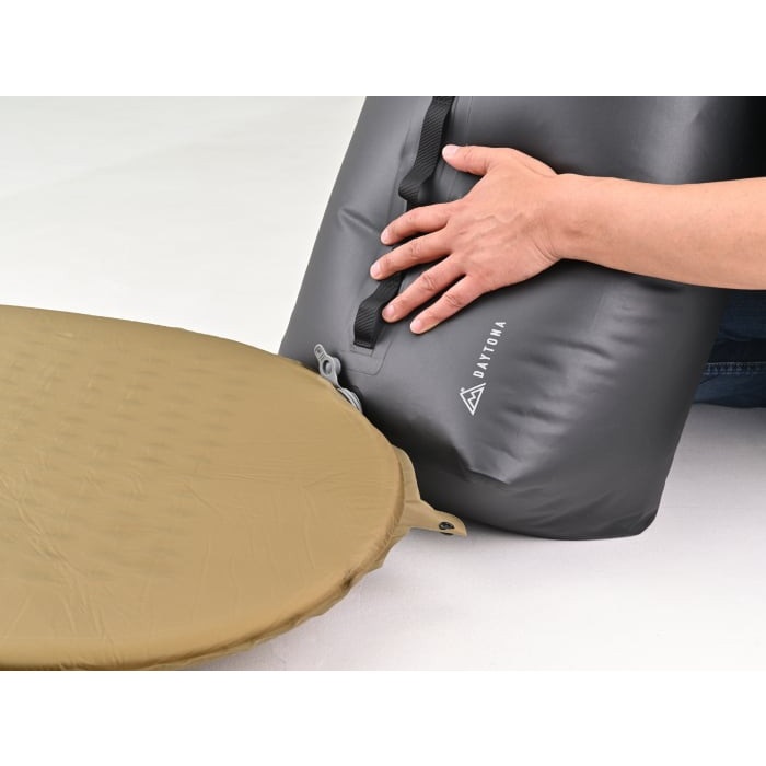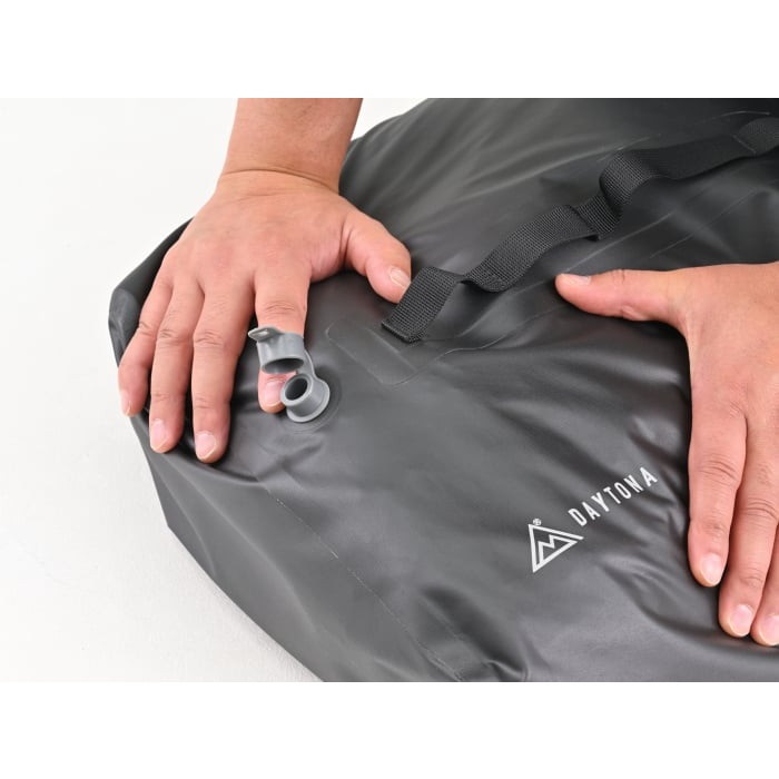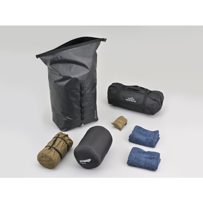テントなどの濡れモノの撤収に便利な防水バッグ。エアバルブ付きで、コンパクトに圧縮したり、ハイブリットマットのエアポンプとしても使用可能。デイジーチェーン付きで、Henly Begins シートバッグへの固定にも便利。