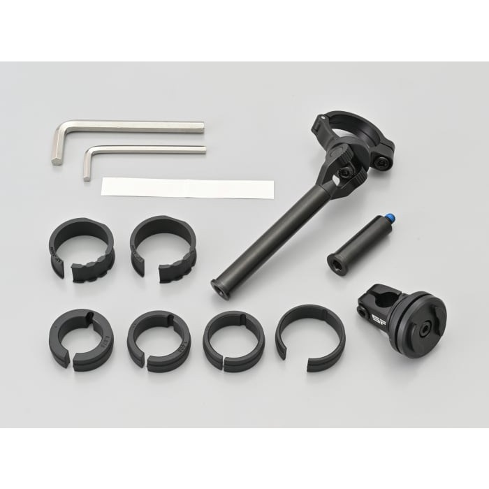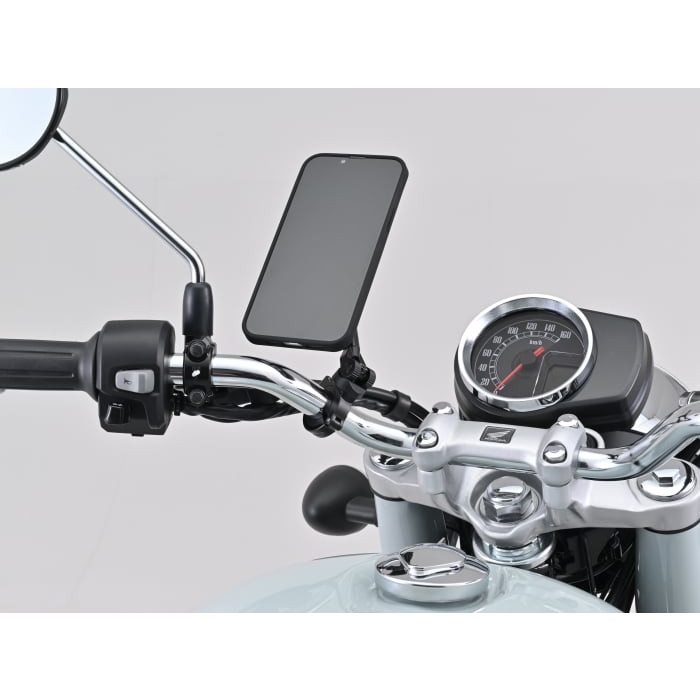 今までになかった3D可変構造のオートバイ用マウント。縦横斜め回転の3次元にスマホを固定したいところに調整できるモトマウント。ハンドルの立ち上がり、狭いスイッチボックス付近でも自由自在に調整が可能。