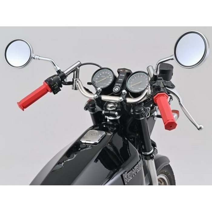 エルゴノミクス(人間工学)デザインを採り入れたデイトナオリジナルグリップ。グリップ力に優れるやわらかな素材を使用し、長時間のライディングでも疲れにくくなっています。70’sビンテージモーターサイクルのグリップを現代風にアレンジした七角形グリップです。
