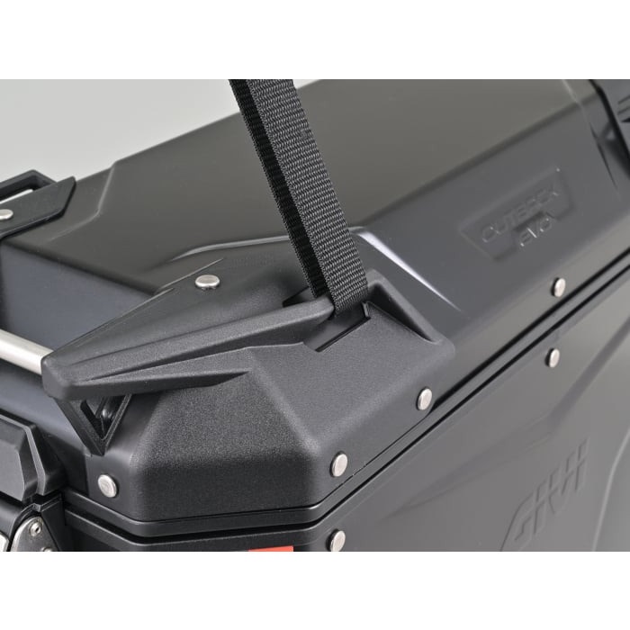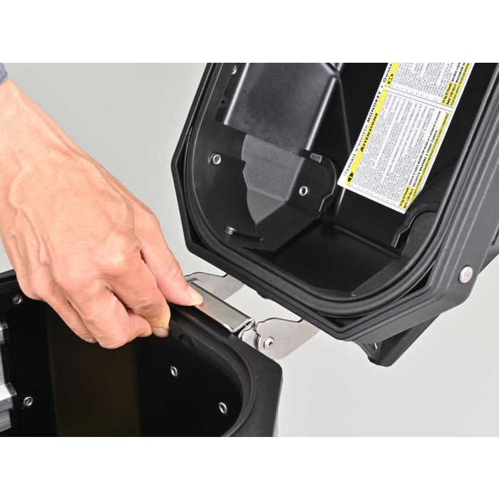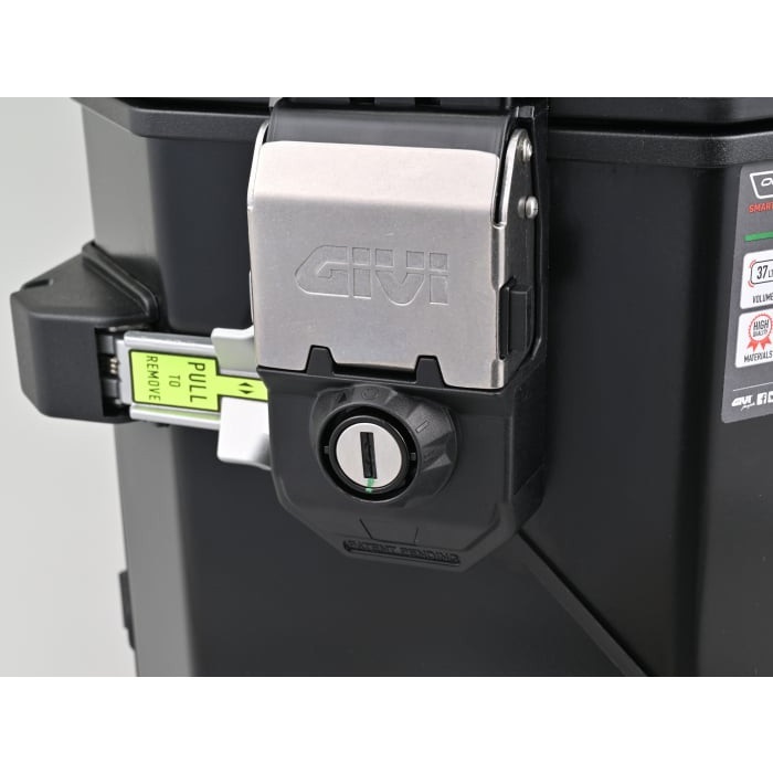 上フタを取り外せば、ケースからはみ出る大きな荷物も積載可能です。最新作の「EVO SMART」では、前作「EVO」で採用された大型の荷掛けフックやARHS(上フタ開口調整システム)を踏襲のうえ、トリプル装着時など、同じ鍵への交換が簡単な「スマートセキュリティロック」を新採用。キーを抜いた状態でフタの開閉ができる機能も追加されました。