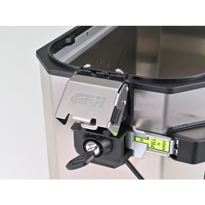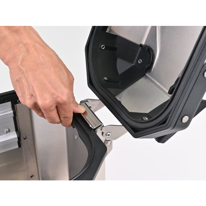 上フタを取り外せば、ケースからはみ出る大きな荷物も積載可能です。最新作の「EVO SMART」では、前作「EVO」で採用された大型の荷掛けフックやARHS(上フタ開口調整システム)を踏襲のうえ、トリプル装着時など、同じ鍵への交換が簡単な「スマートセキュリティロック」を新採用。キーを抜いた状態でフタの開閉ができる機能も追加されました。