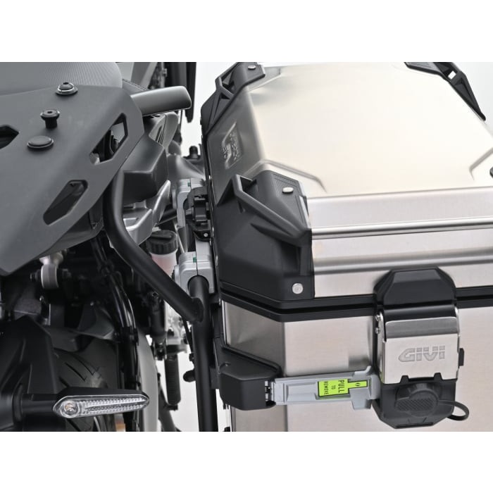 車体から取り外すことなくサイドケースを斜めに固定できるので、トップケースが大きくても荷物の出し入れが可能です。