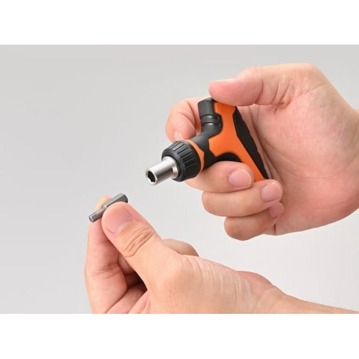 狭いスペースでも作業しやすい手のひらサイズのミニラチェットTハンドルと、六角ソケット、10種類のビットなどを組み合わせたツールセット。六角ソケットは、ミリサイズ、インチサイズ各7種類の複合セットです。全長60mmの磁気付きエクステンションバーも付属するので、奥まった場所の作業も可能です。