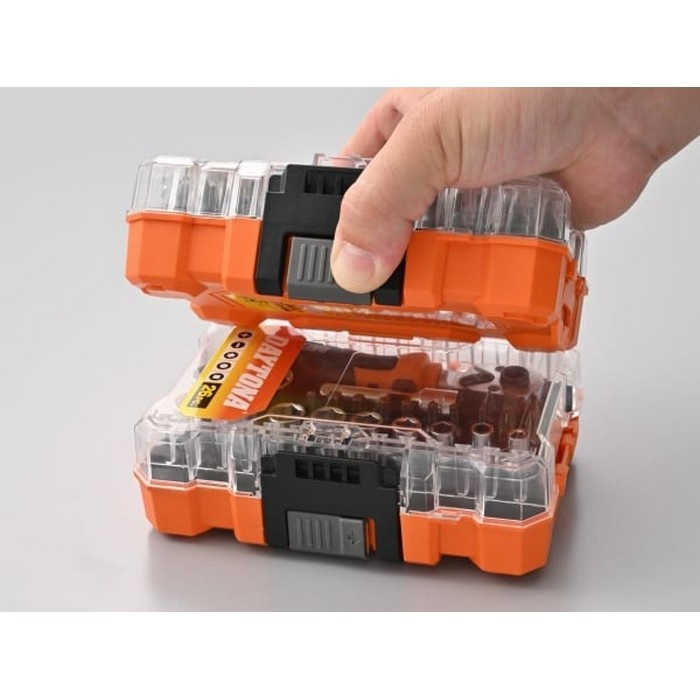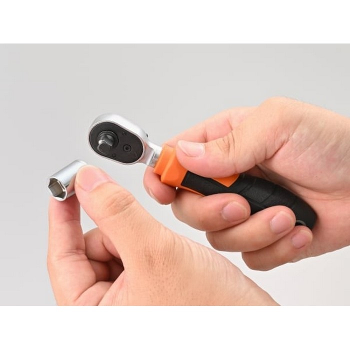 差し込み角1/4インチ(6.35mm角)のラチェットハンドルと、11サイズの六角ソケット(4?14mm)、マイナス・プラス・トルクスビットなどを組み合わせた、コンパクトなツールセット。ソケットエクステンションバー(50mm)も付属し、奥まった場所での作業も可能です。