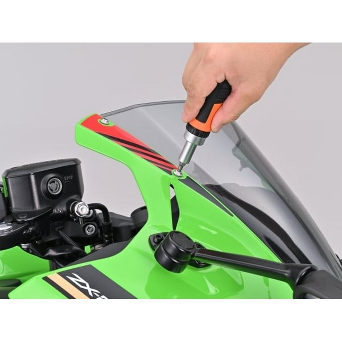 狭いスペースでも操作しやすい1/4インチビット用のラチェットドライバーと、4サイズの六角ソケット、36種類のビットなどを組み合わせた高機能ツールセット。多彩な作業がこれ一つで可能です。