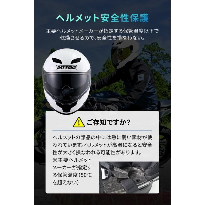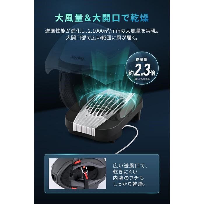 ・主な機能:大風量&大開口 / プラズマイオン消臭 / 各種ヘルメット対応 / グローブ・フットウエア対応