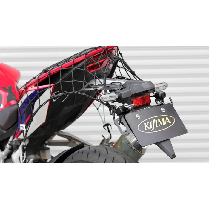 ナンバープレート固定用ボルトを利用して装着するヘルメットロックです。ナンバープレート周囲にスペースが必要となりますが汎用性の高いヘルメットロックとなっております。その他ツーリングネットやバンジーコード等の荷掛ポイントも左右に配備しております。