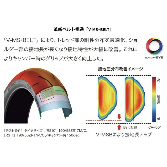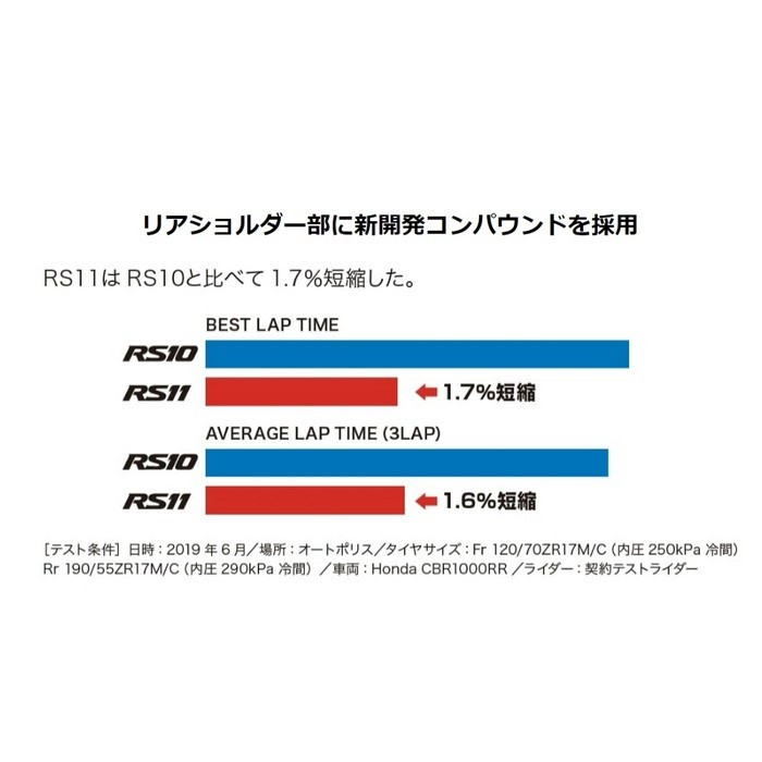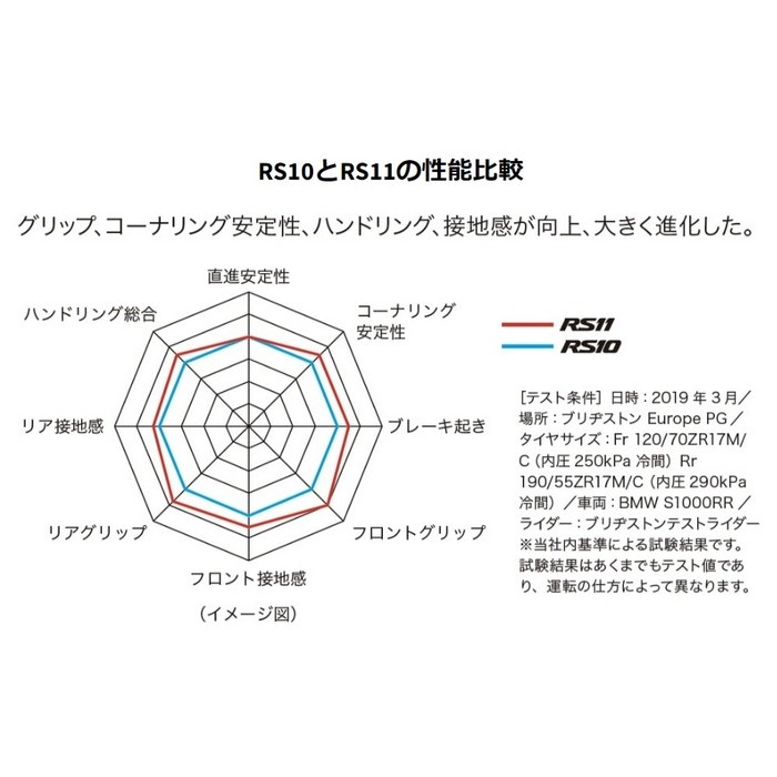 グリップ性能、コーナリング安定性、ハンドリング、接地感などスポーツ走行に欠かせないこれらの性能を大幅に向上させたRACING STREET RS11は異次元の走りを提供する。