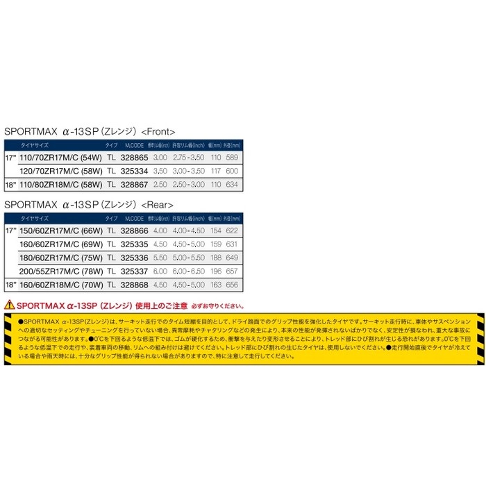 タイプ:プロダクションレース対応レーシング・ラジアル