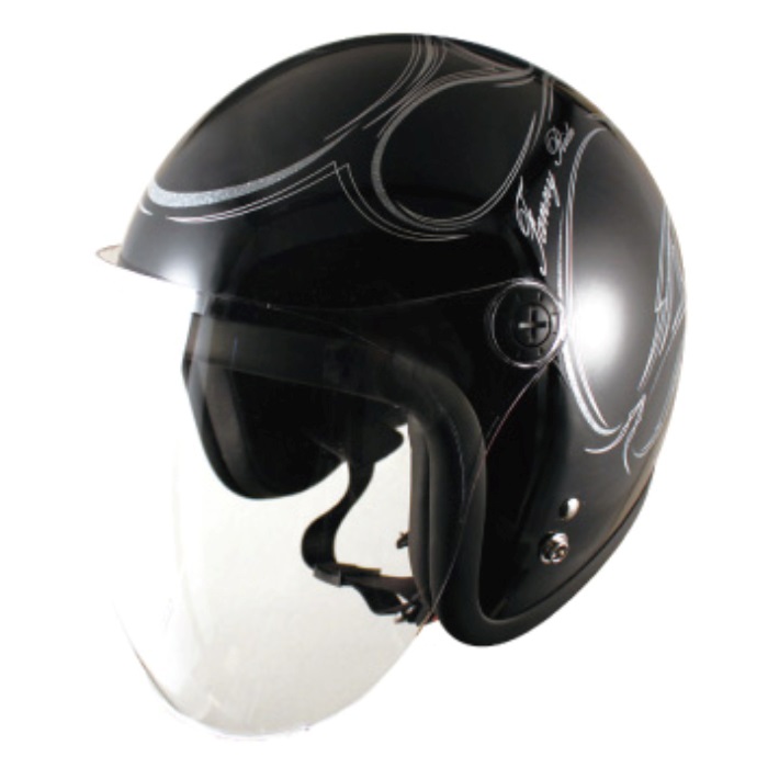 【在庫限り】JL-65SR スモールJETシールド付 ソリッドブラック/ラメシルバーファイアー ジェットヘルメット