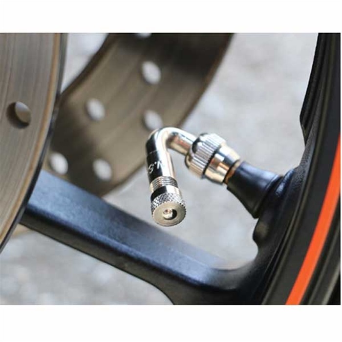 タイヤメンテナンスの便利アイテム! L型に曲がった形状により、タイヤの空気入れ作業がより簡単になります。