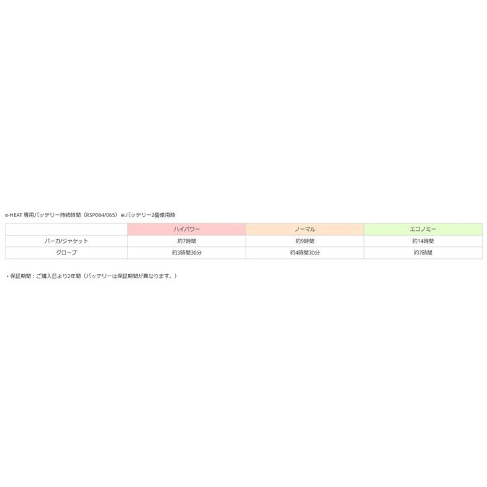e-HEATご使用時、専用モバイルバッテリー接続の方はe-HEAT 7.2V充電器&バッテリーセット(RSP064)、車両バッテリー接続の方はe-HEAT 車両バッテリー接続ケーブルセット(RSP071 / 067)がそれぞれ必要となります。