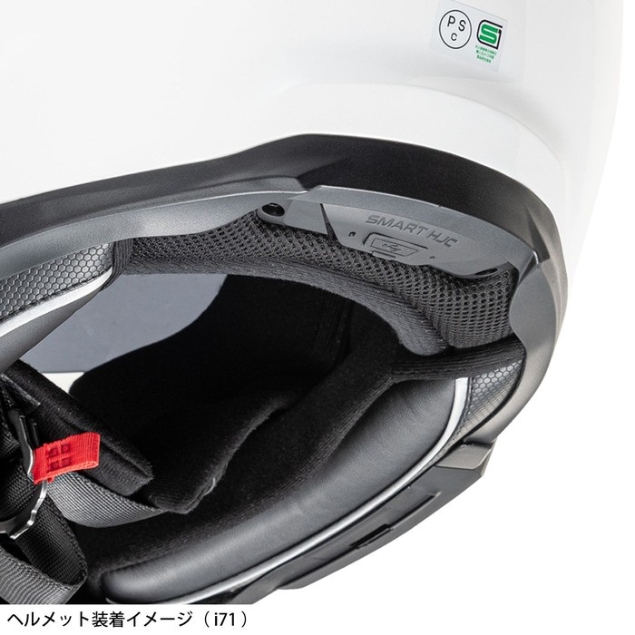 HJCヘルメット専用設計のビルトインモデルで、装着時もスマートな外観と実用性の高さを兼ね備えたインカム。