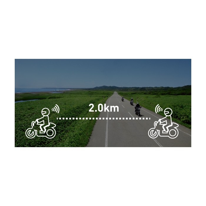Meshインターコム:最大2km(6人以上接続の場合は最大8km)
