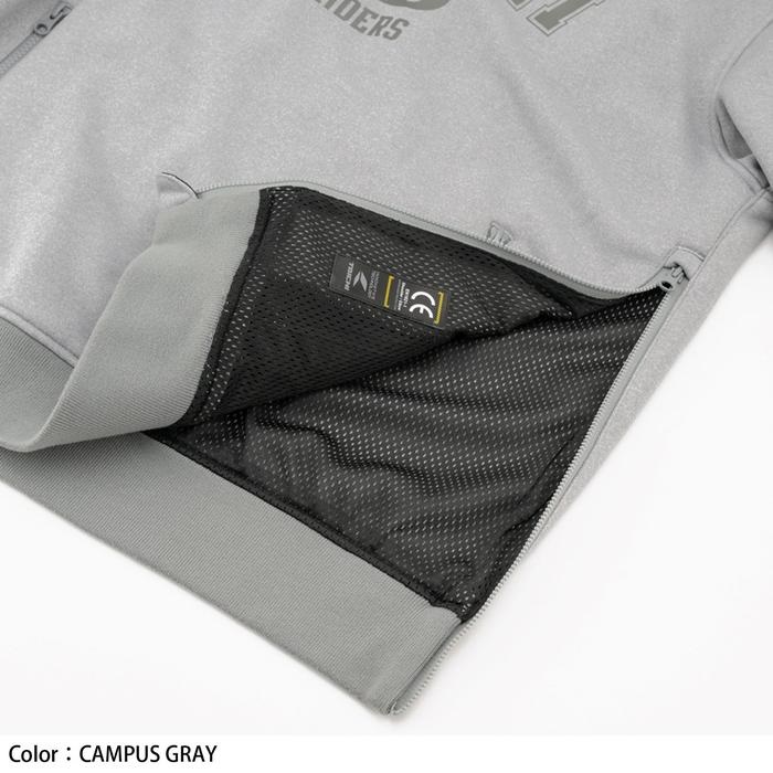 胸部プロテクター(別売り)を装着するためのアタッチメントを装備。スナップボタンで胸部プロテクターの着脱が可能です。(CPS対応)