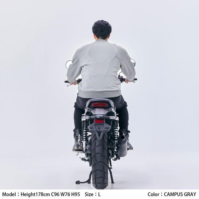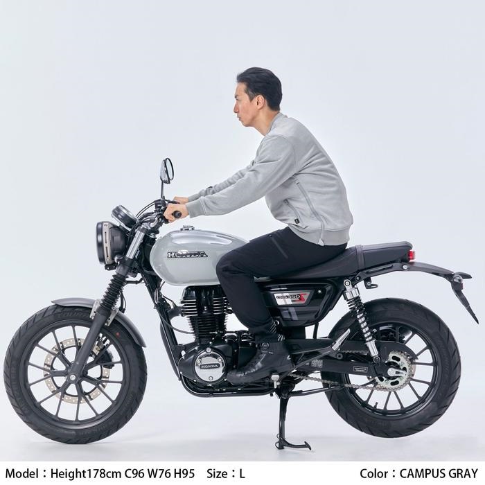 街中でも普段着感覚で着られるスウェットスタイルのライディングウエア。