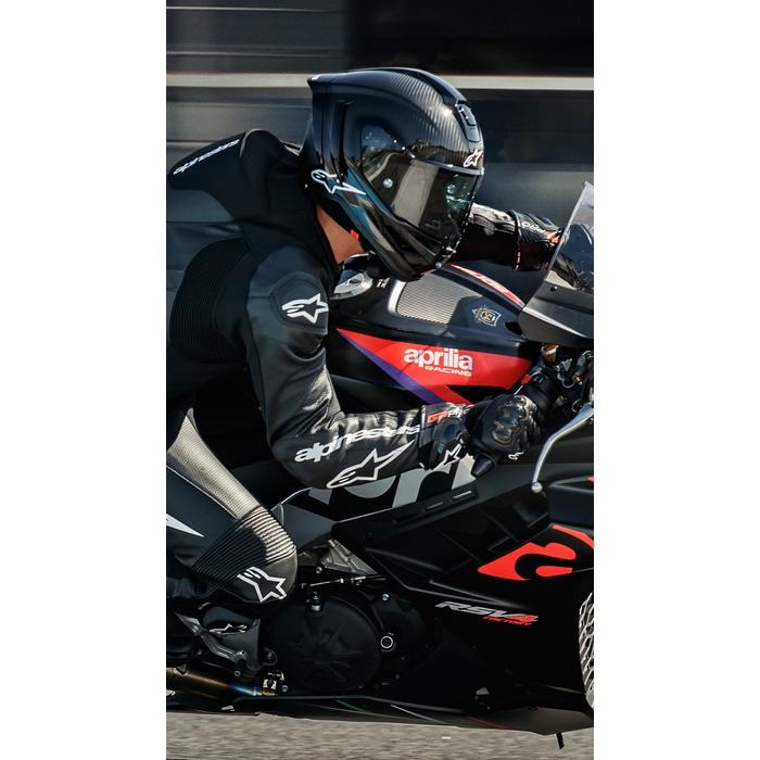 MotoGPではホルヘ・マルティンやペドロ・アコスタ、ジャック・ミラーや古里太陽らが使用しているアルパインスターズ製ヘルメット「スーパーテックR10」。