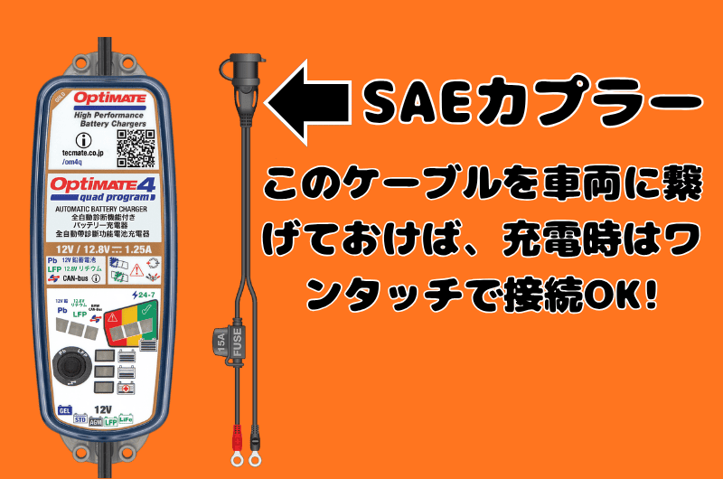 - 充電器:バッテリーを適正電圧まで回復・維持するメンテナンス用